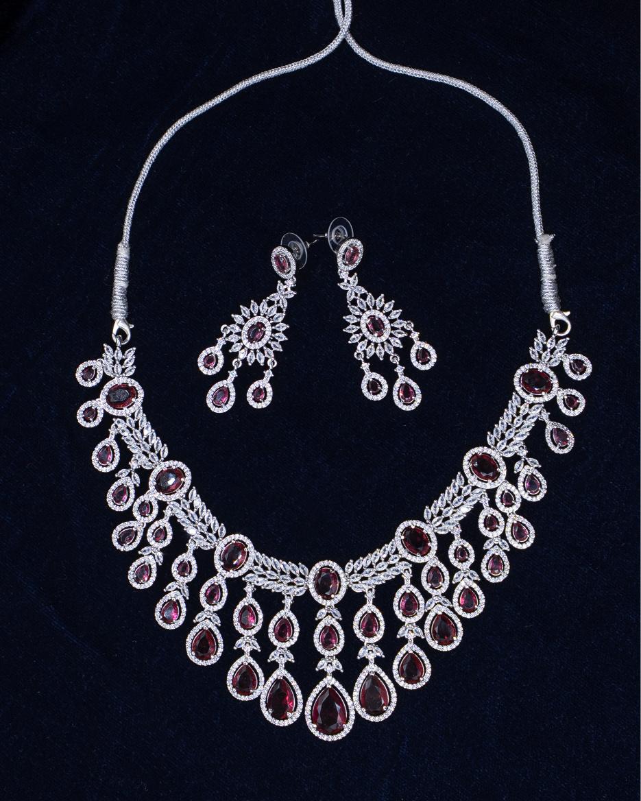 AD Necklace – A Timeless Beauty with Red Drop Elegance