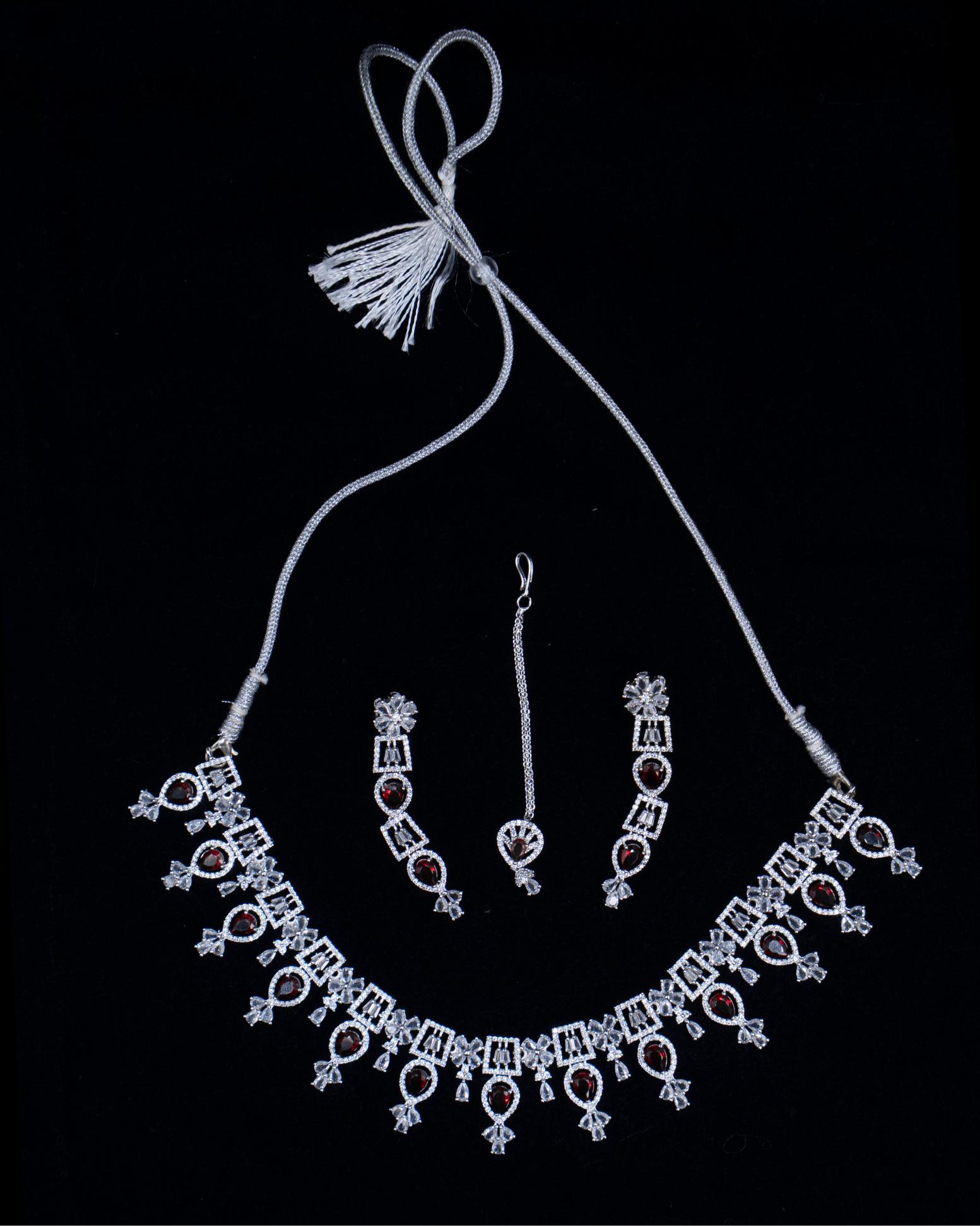 AD Necklace Set with Maang Tikka & Earrings – A Regal Ruby Affair