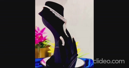 A masterpiece of modern luxury, this stunning choker set features shimmering American Diamonds arranged in a graceful winged pattern. Designed to make a bold statement, its asymmetrical elegance and dazzling brilliance make it a must-have for fashion-forward divas.