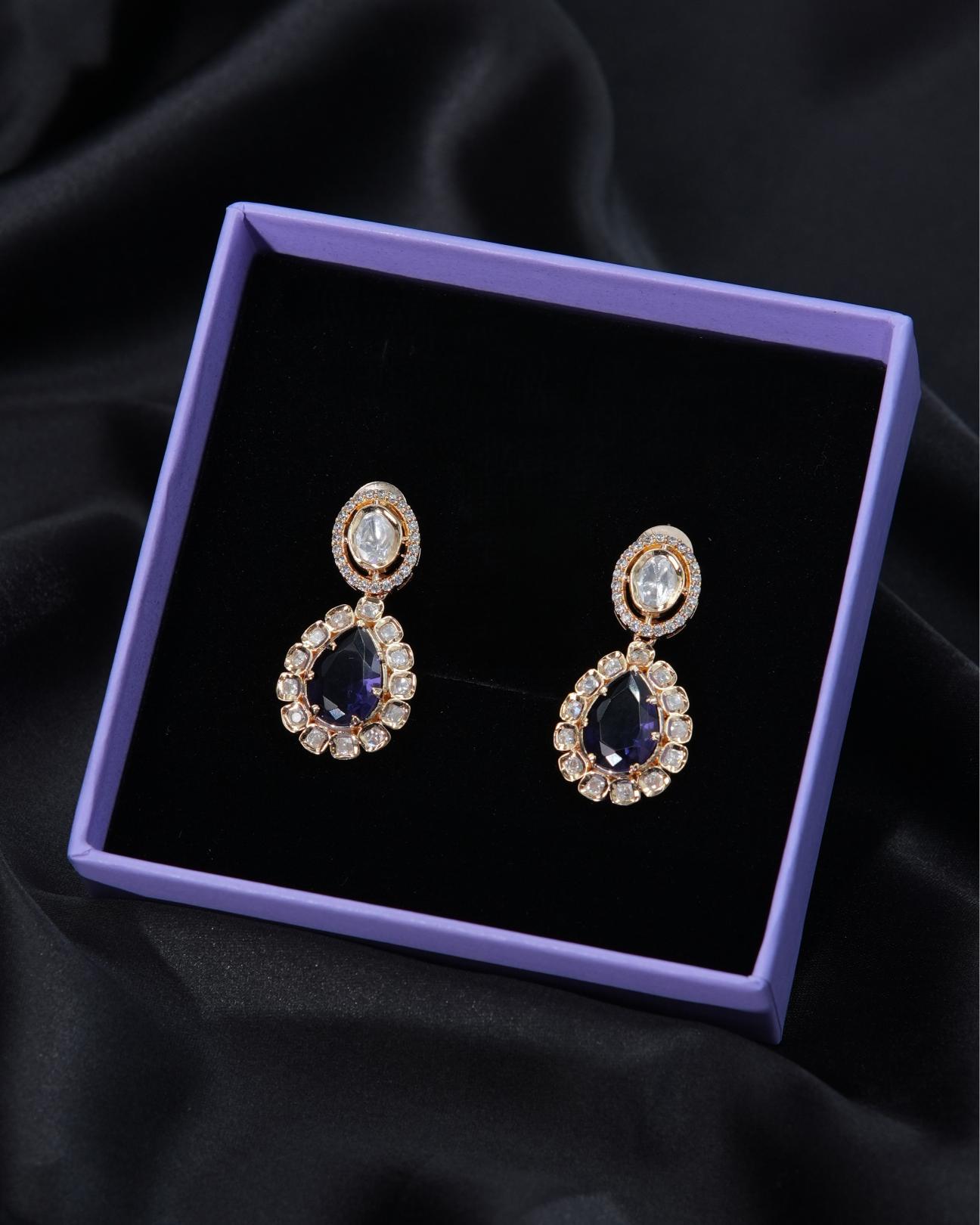 Elegant Drop Kundan Earrings with AD – Available in Purple & Kundan Color