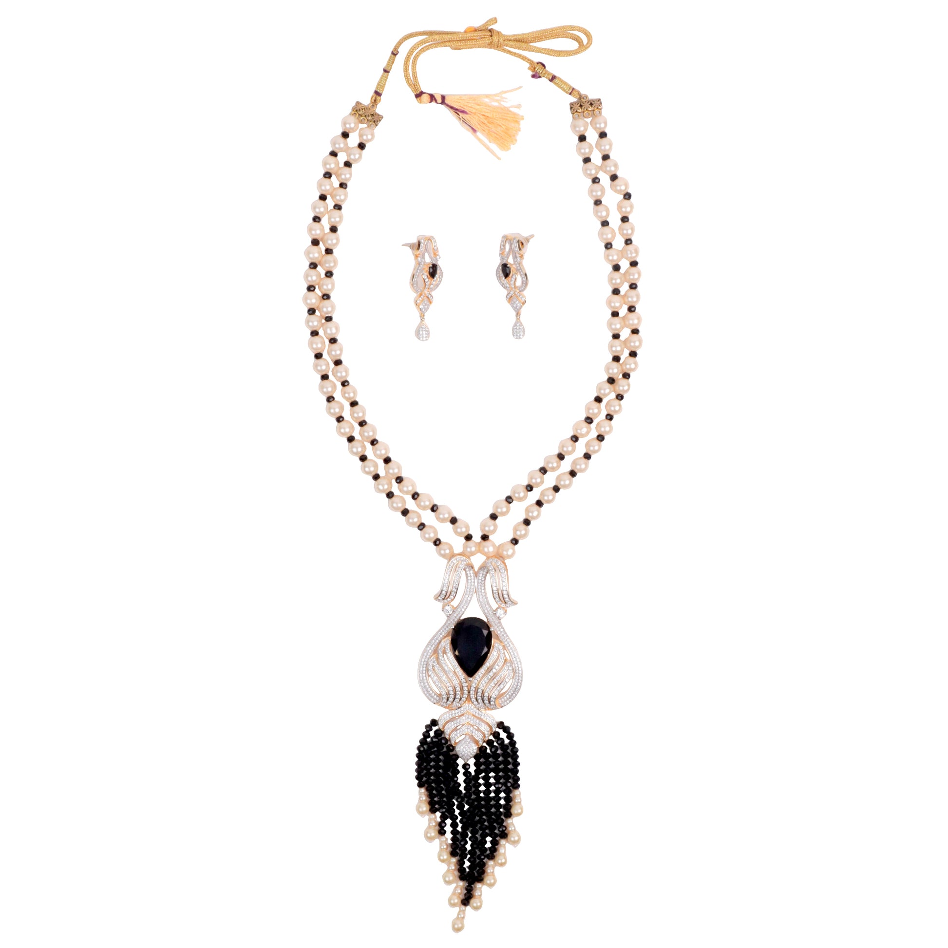 Indulge in the beauty of luxury craftsmanship with this stunning American Diamond & Pearl Necklace Set, designed to make every moment special.