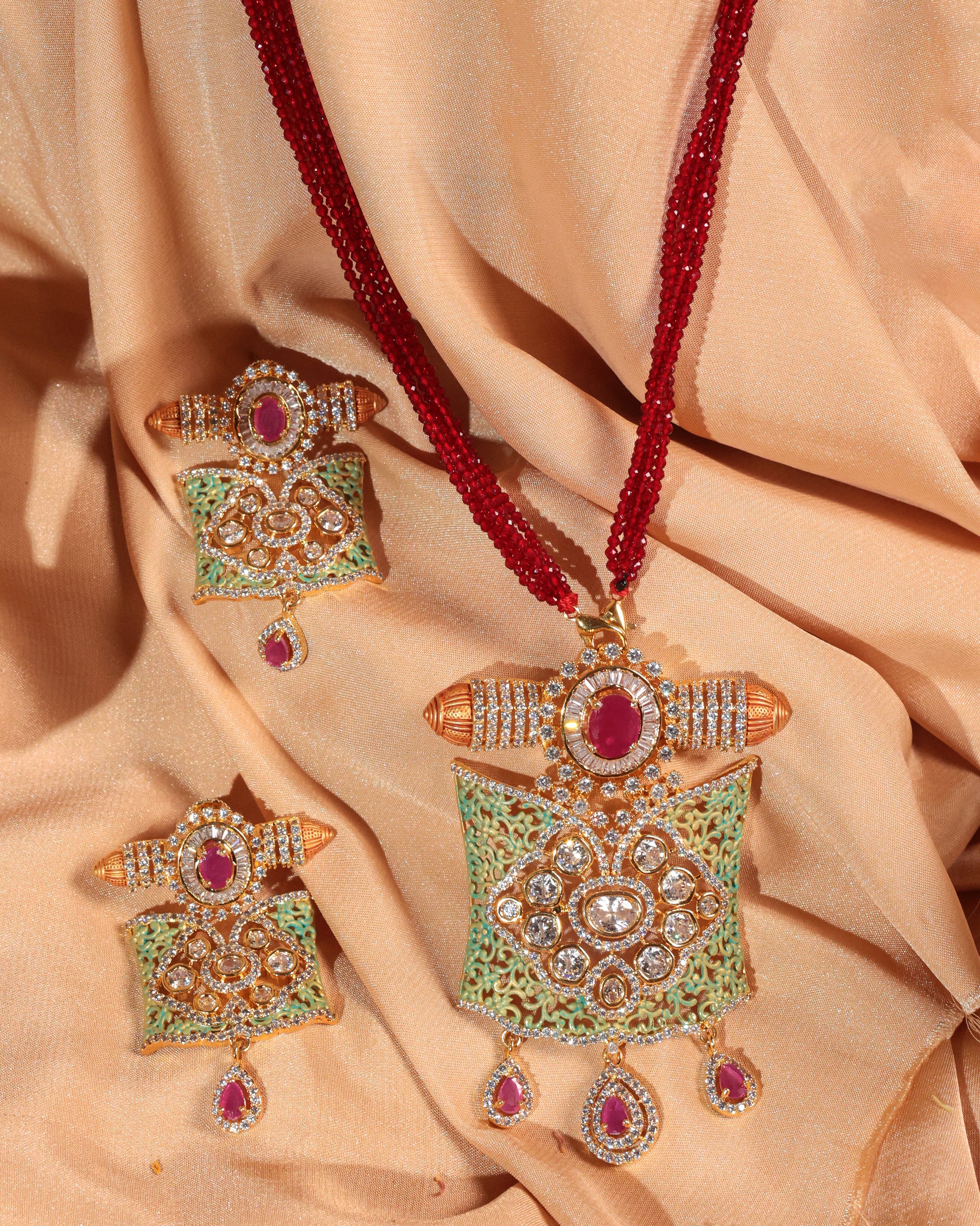 ✔ Rich Red Beaded Chain – Adds a regal and festive charm