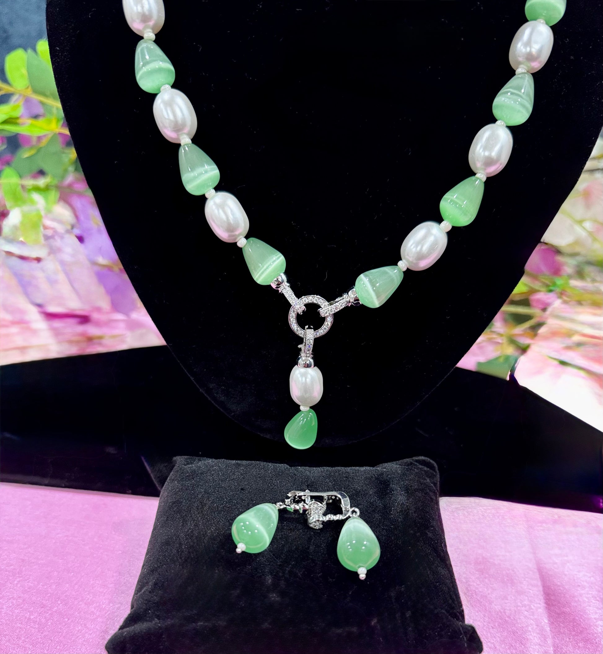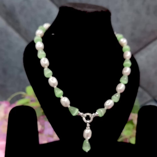 A timeless fusion of soft elegance and modern charm, this exquisite necklace set pairs luminous pearls with serene jade gemstones for an effortlessly sophisticated look.