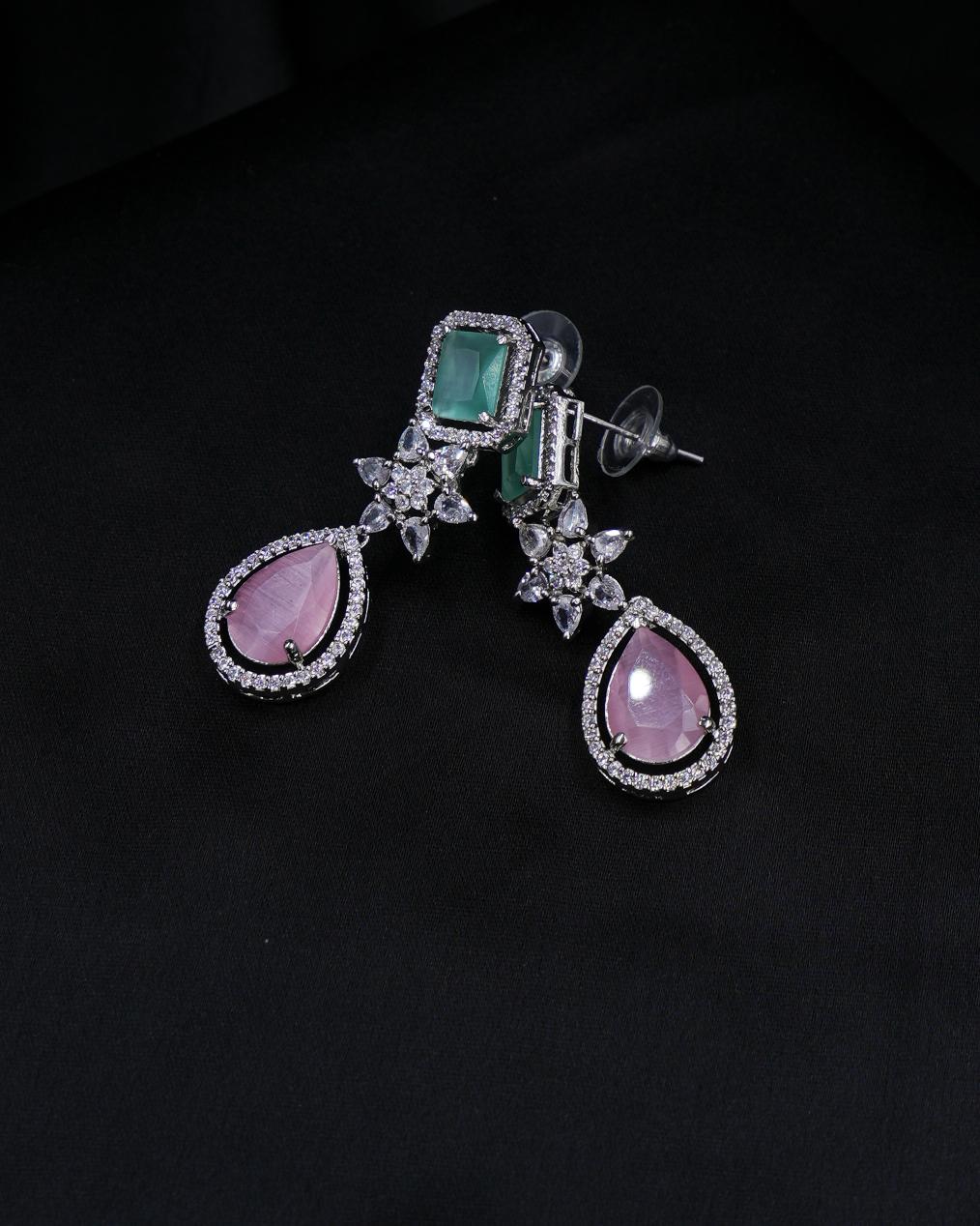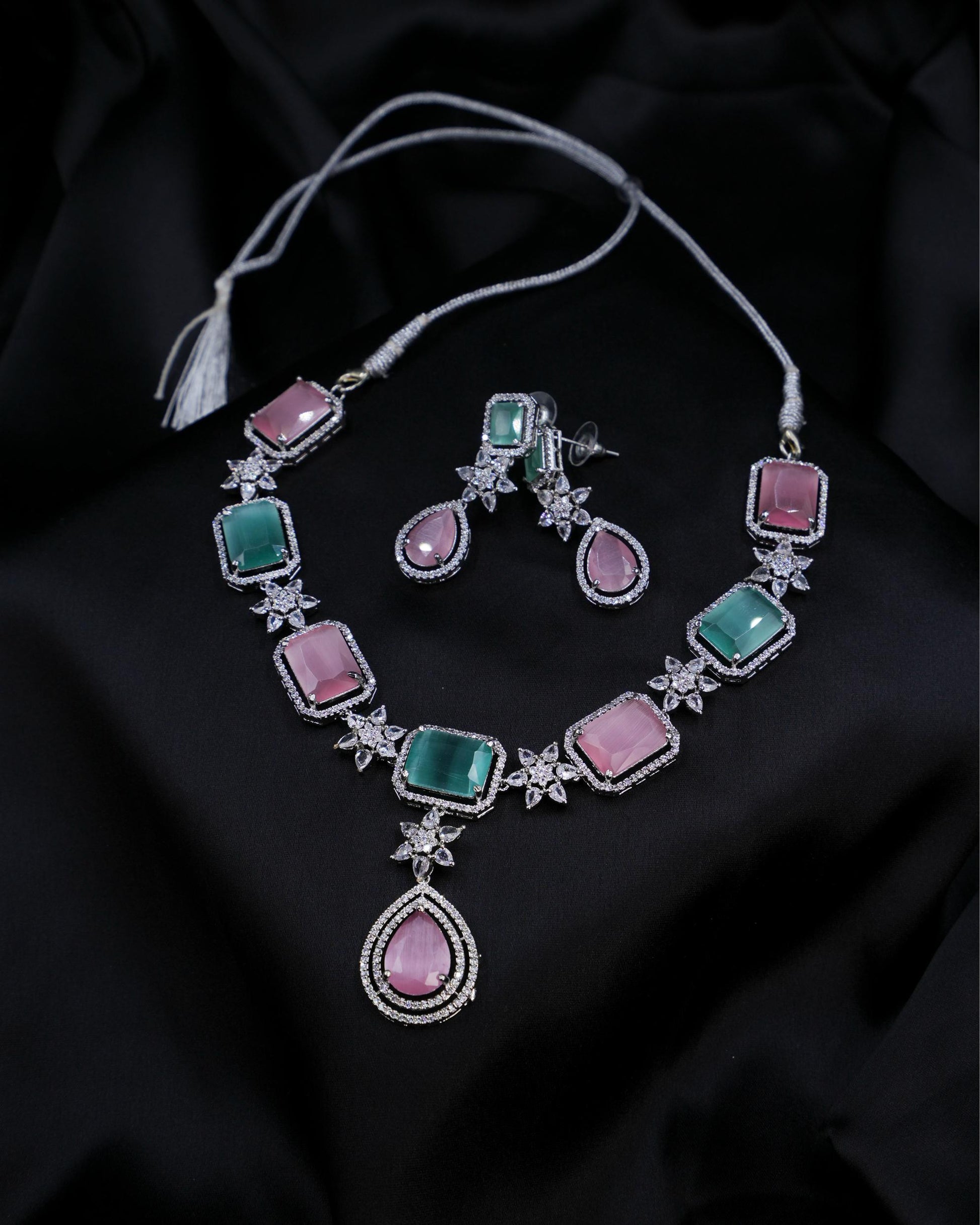 Pastel Pink & Green AD Necklace – A Dreamy Symphony of Elegance