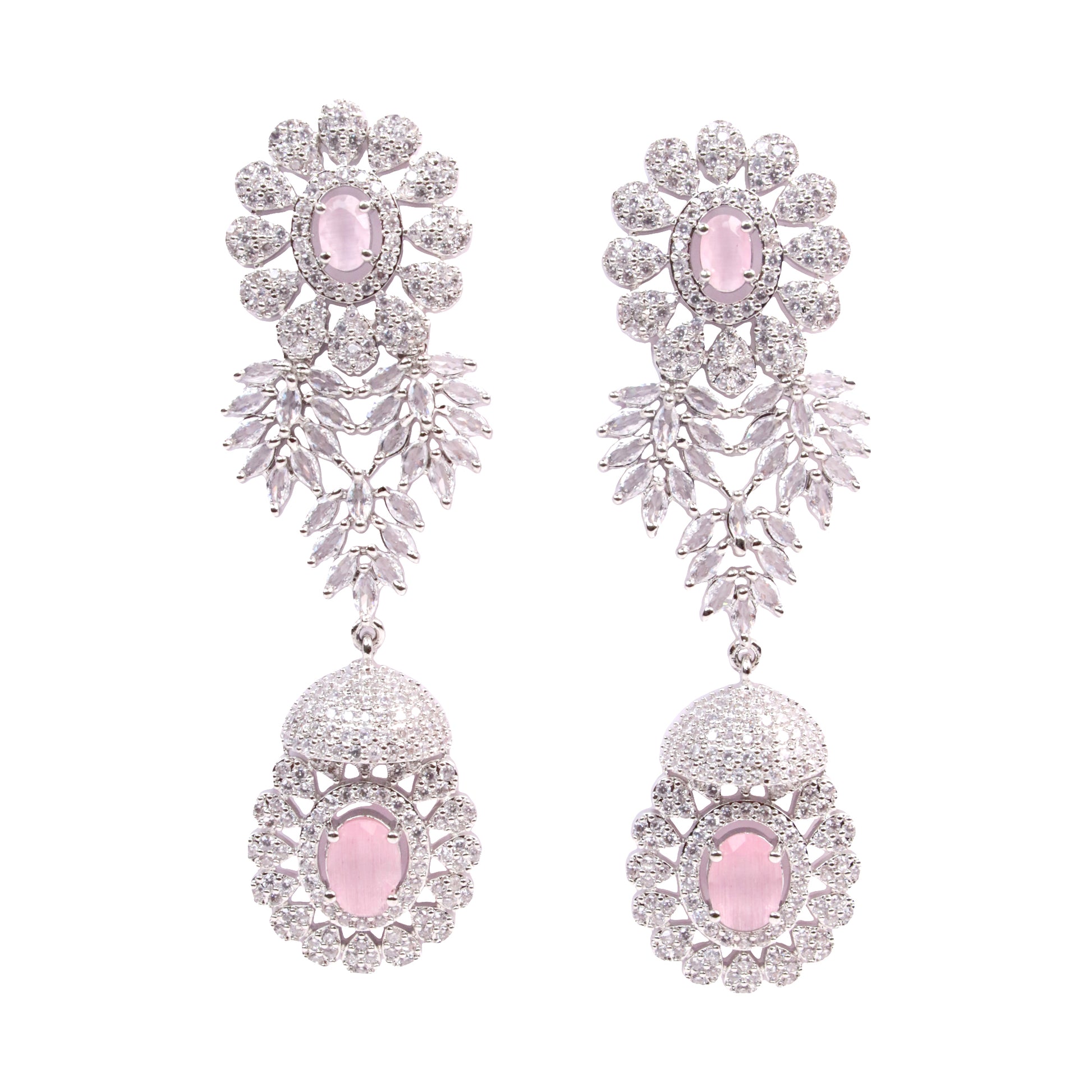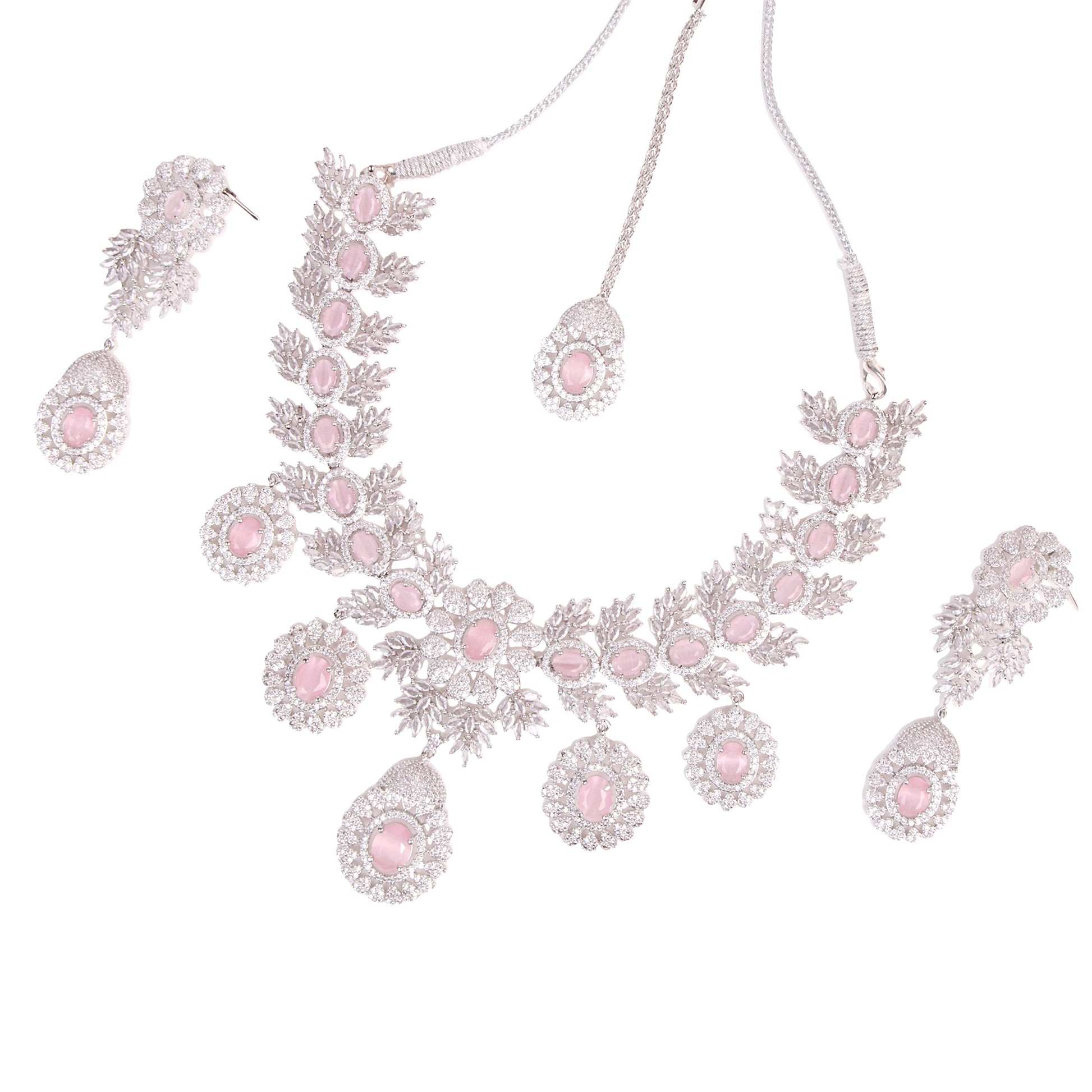 Indulge in luxury and elegance with this breathtaking American diamond necklace set featuring soft blush pink stones, dazzling diamond accents, and an exquisite floral-inspired design. A true masterpiece for those who love to shine with grace!